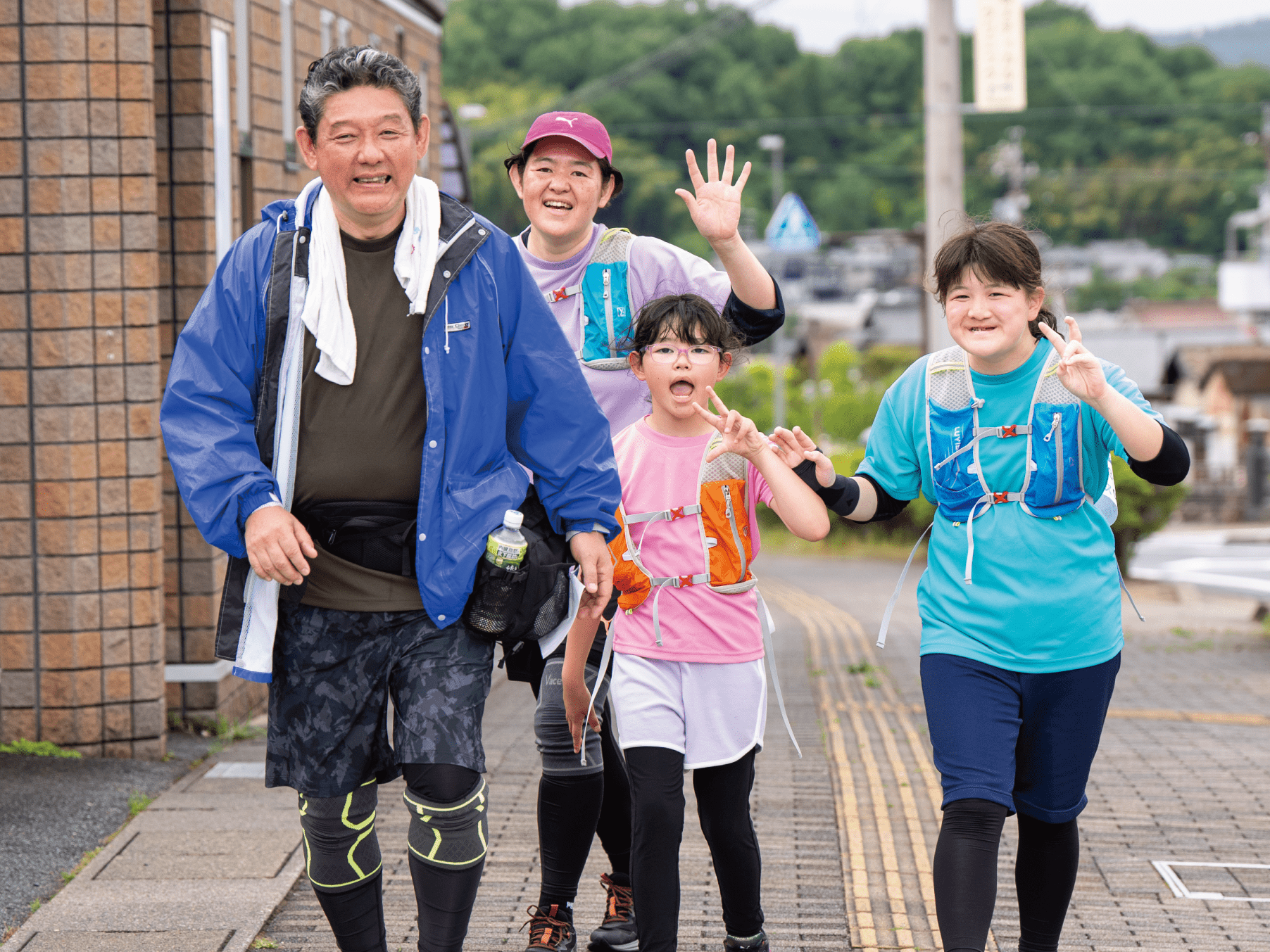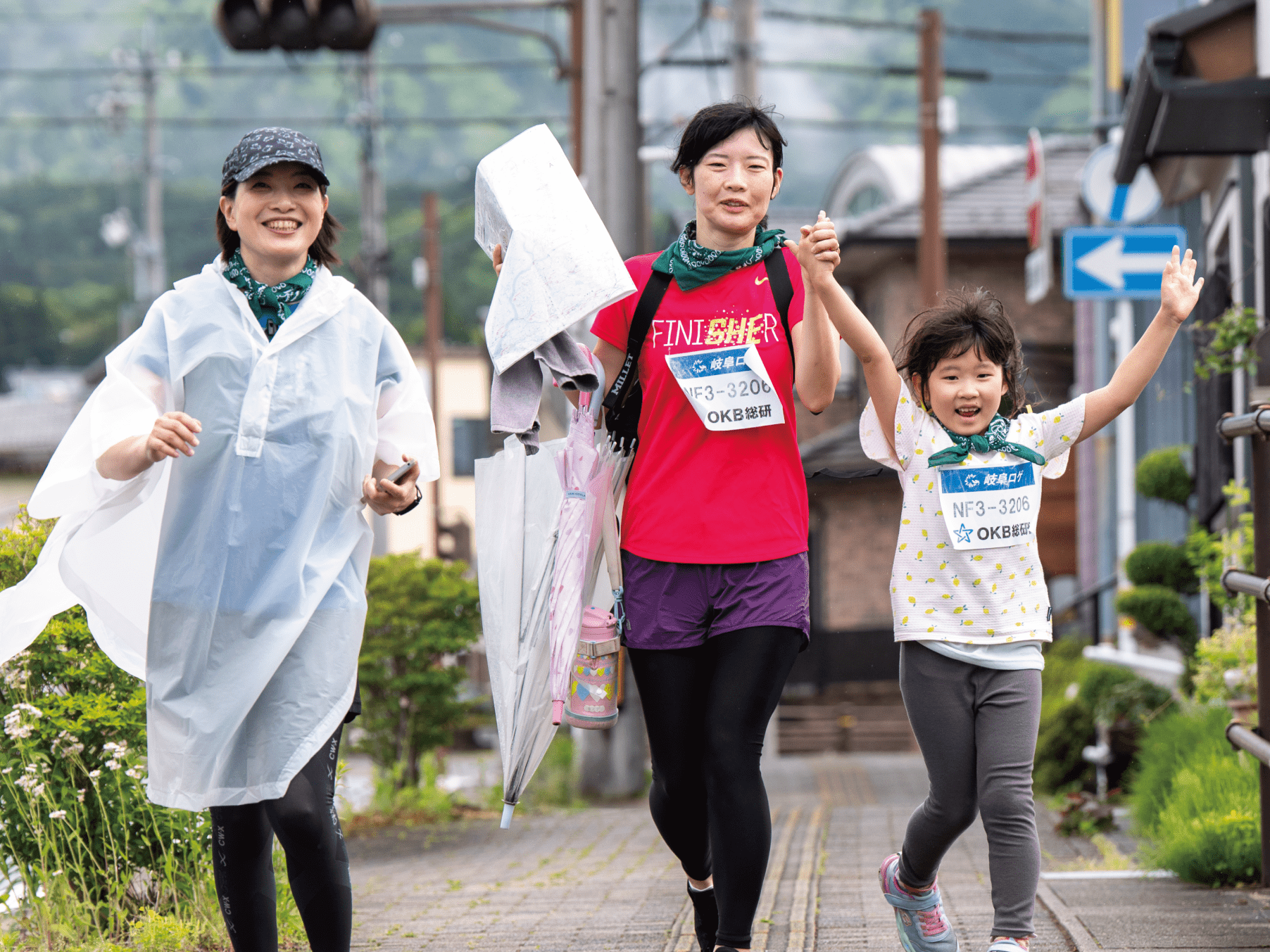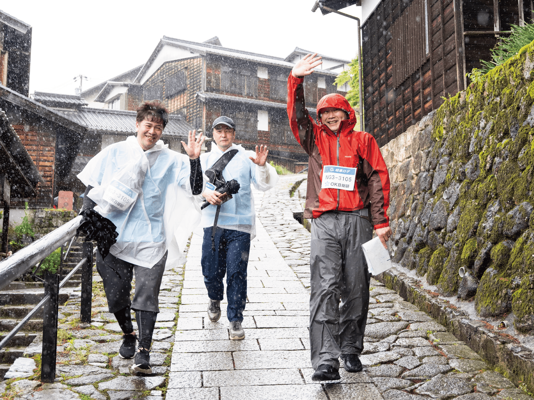 降りしきる雨の中、みなさん素晴らしい笑顔でスタートです!(少しでも雨がやんでくれることをスタッフ一同祈っていました…)