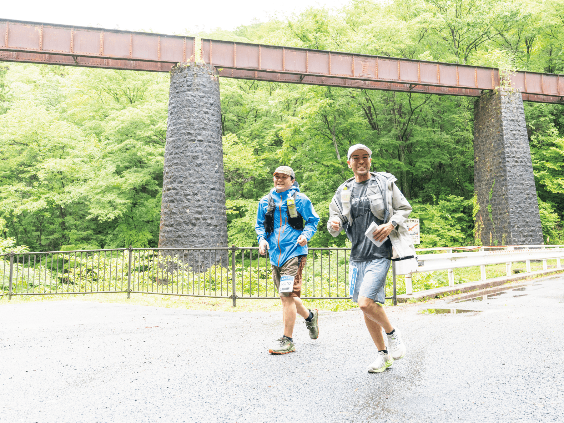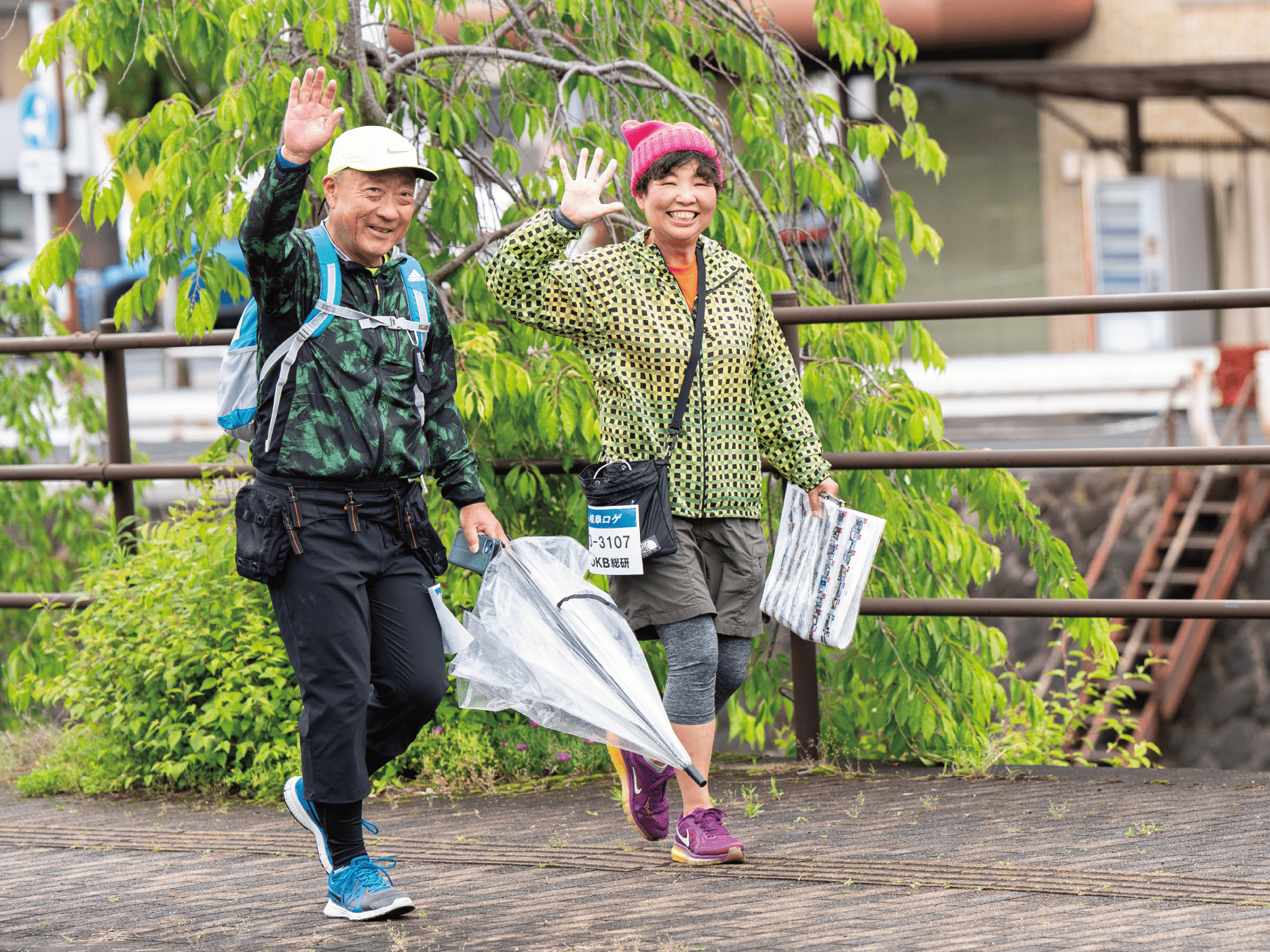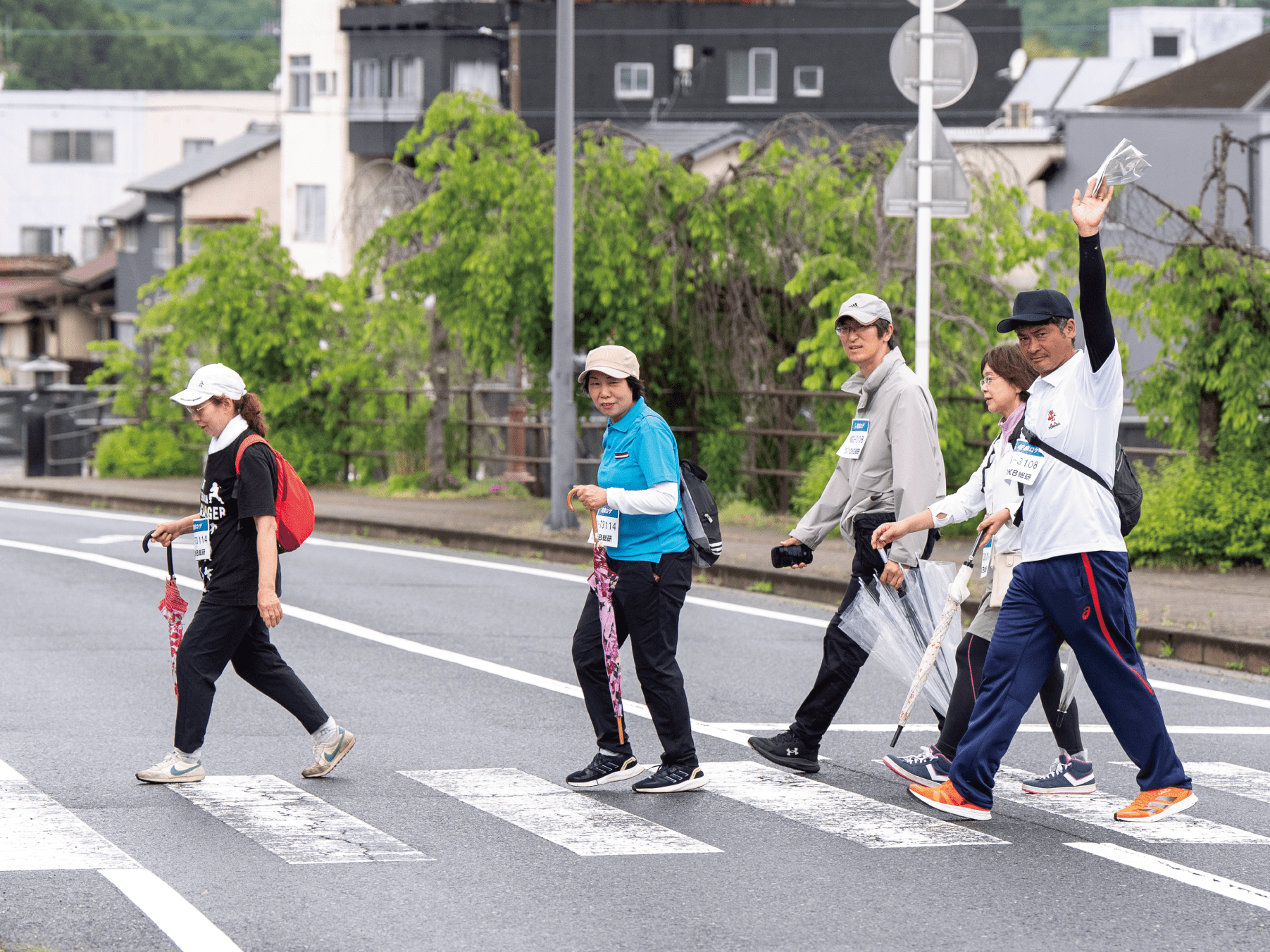 降りしきる雨の中、みなさん素晴らしい笑顔でスタートです!(少しでも雨がやんでくれることをスタッフ一同祈っていました…)